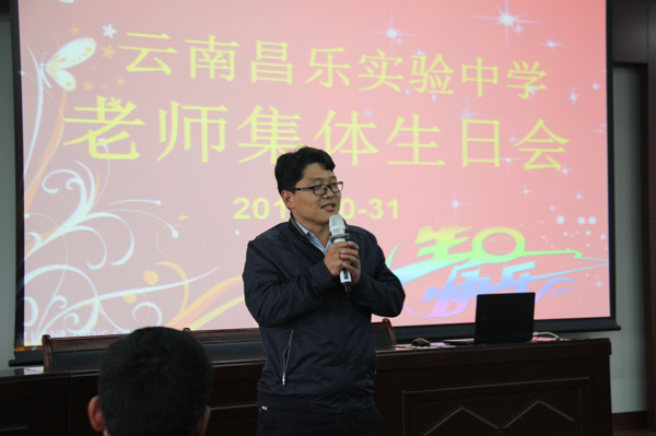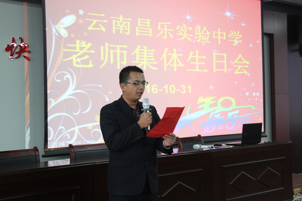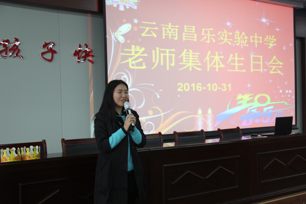 为让老师们感受到云南昌乐实验中学大家庭的温暖,给老师们长期以来的辛勤工作给予肯定和感谢,表达学校对老师们的点滴关怀,10月31日下午,我校在2号报告厅庆祝集体生日会。