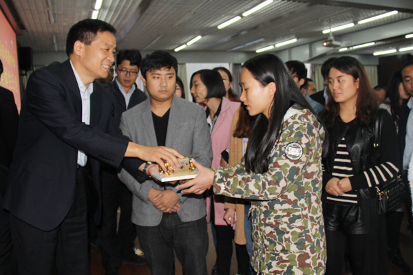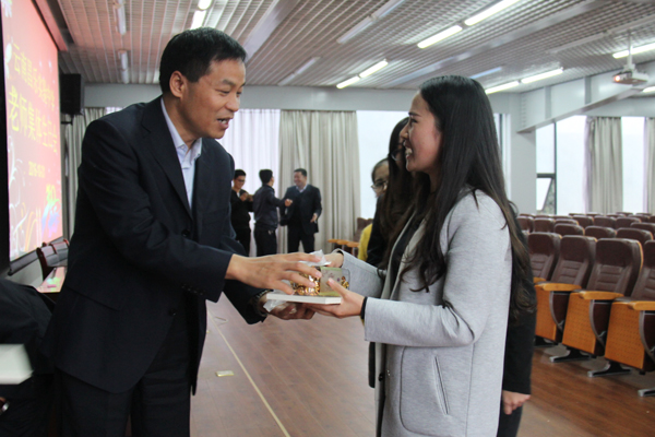 杨峰副校长为寿星们送生日礼物