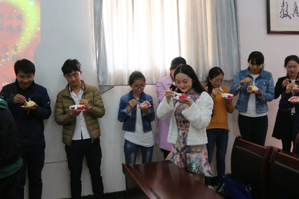 为让老师们感受到云南昌乐实验中学大家庭的温暖,给老师们长期以来的辛勤工作给予肯定和感谢,增加老师们的幸福指数,3月21日下午,我校在行政会议室举行二、三月份集体生日会。