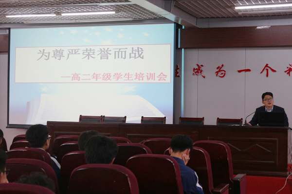首先,优秀学生代表肖云浩、李虹颖分别和同学们作学习方法的经验交流。其后,李智主任作题为“为尊严和荣誉而战”的指导培训。