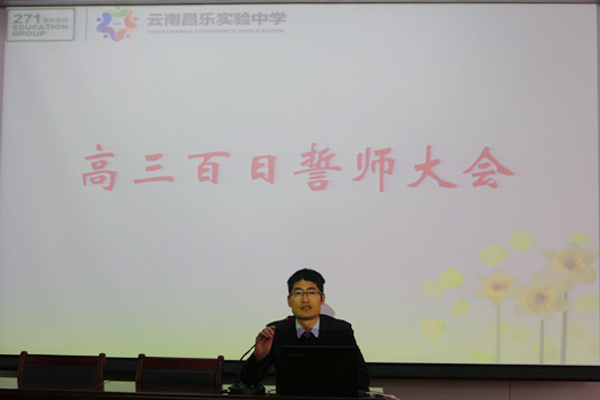 为理想,早起三更,读迎晨曦,磨枪挫剑,不惧兵临城下!为目标,晚卧夜半,梦别星辰,敛神养气,以备全力以赴!2月27日,一年一度的高考进入了紧张的一百天倒计时。在这最后的两千四百个小时,高三年级全体师生满怀雄心壮志,充满激情的举行了百日誓师大会。大会由高三年级牟明放主任主持,吕金岗校长出席指导,杨峰副校长、高二年级主任李智参会。