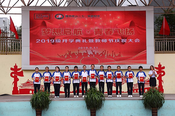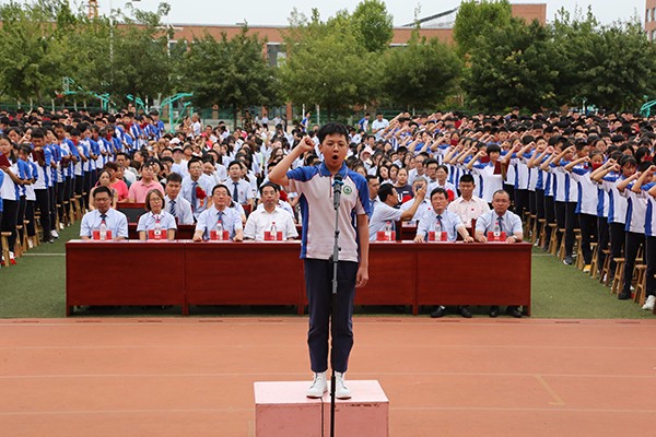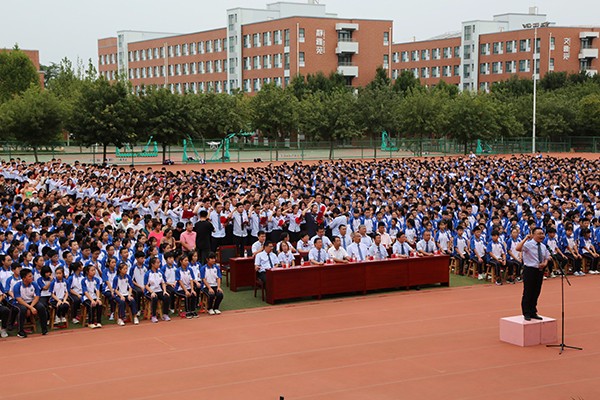 2019年9月11日上午,我校在操场隆重举行“梦想启航·青春飞扬”2019级开学典礼暨教师节庆祝大会。峡山区教育体育管理局党委书记、局长张少军、山东271教育集团总校长赵丰平等领导出席大会,与我校全体师生和家长代表欢聚一堂,共同庆祝新学年的到来。