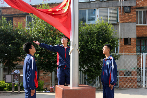 10月30日上午,我校全体师生齐聚体育场举行2017-2018学年第一学期第九周升旗仪式。本周升旗仪式由高一(7)班邓翔予同学主持,高一年级主任牟明放作国旗下的讲话,讲话的主题是“学习十九大精神,主动成长,承担责任”。
