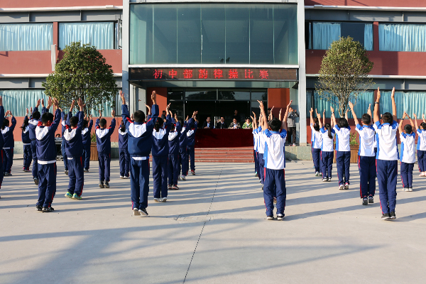 为增强同学们的体质,丰富校园文化生活,让同学们体验生命向上的力量,提高认识美、表现美和创造美的能力,10月31日下午,我校初中部在运动场举行韵律操创新展示比赛。